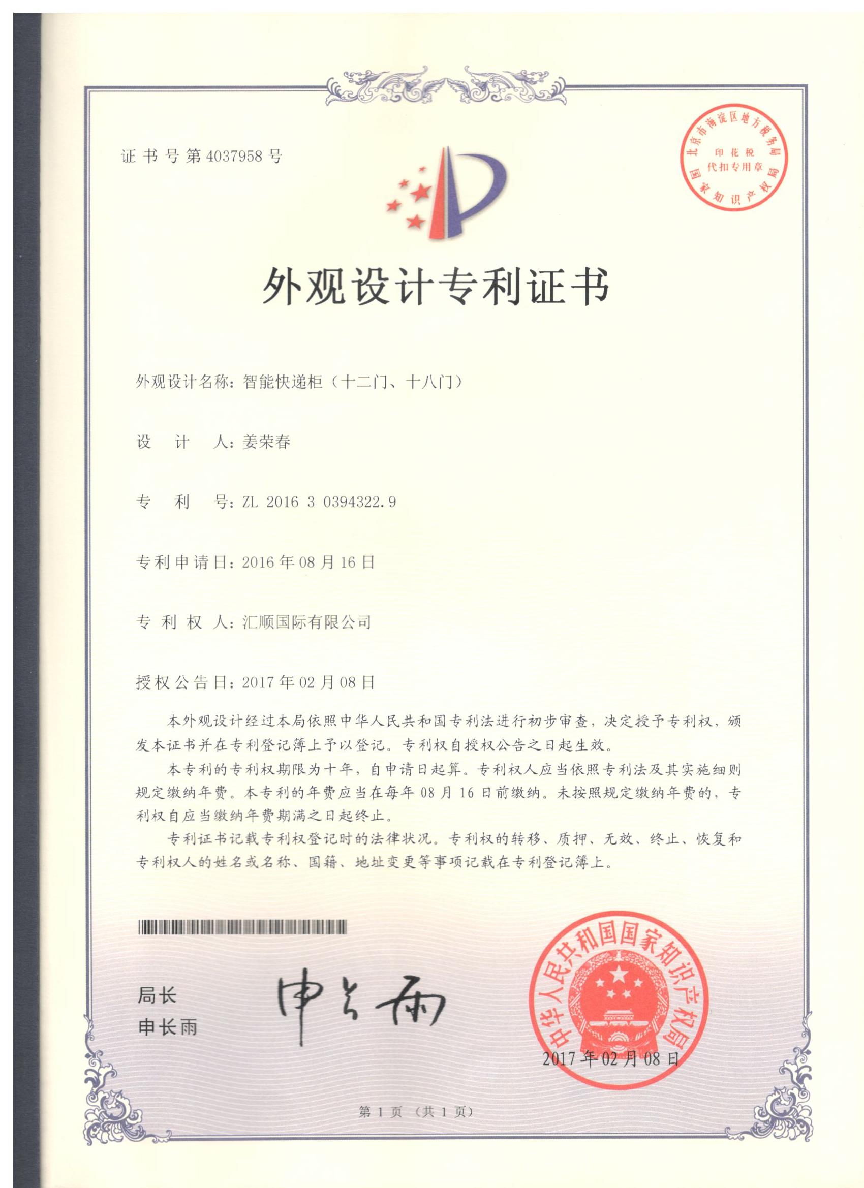 外观设计专利证书 D12&D18